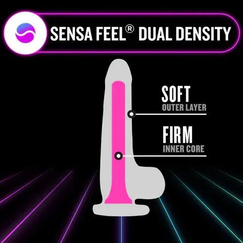 Blush Neo Elite Paradise Glow 7.5 吋深霓虹粉紅假陽具,以 SENSA FEEL® 雙密度技術打造柔軟外層與扎實內芯的逼真體感。透明矽膠層能在黑暗中發光,使夜間情趣體驗更升級。外觀以深霓虹粉紅呈現魅惑光感,搭配錐形亟頭與順滑表面,無論自用或與伴侶共享都格外舒適。