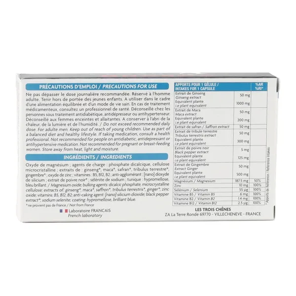 - 含番紅花、韓國高麗蔘、L-精胺酸等核心男性活力成分