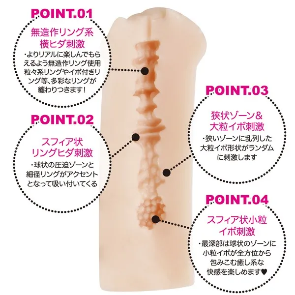 - 結構形式:非貫通式、內部多重肉ヒダ+粒狀刺激設計