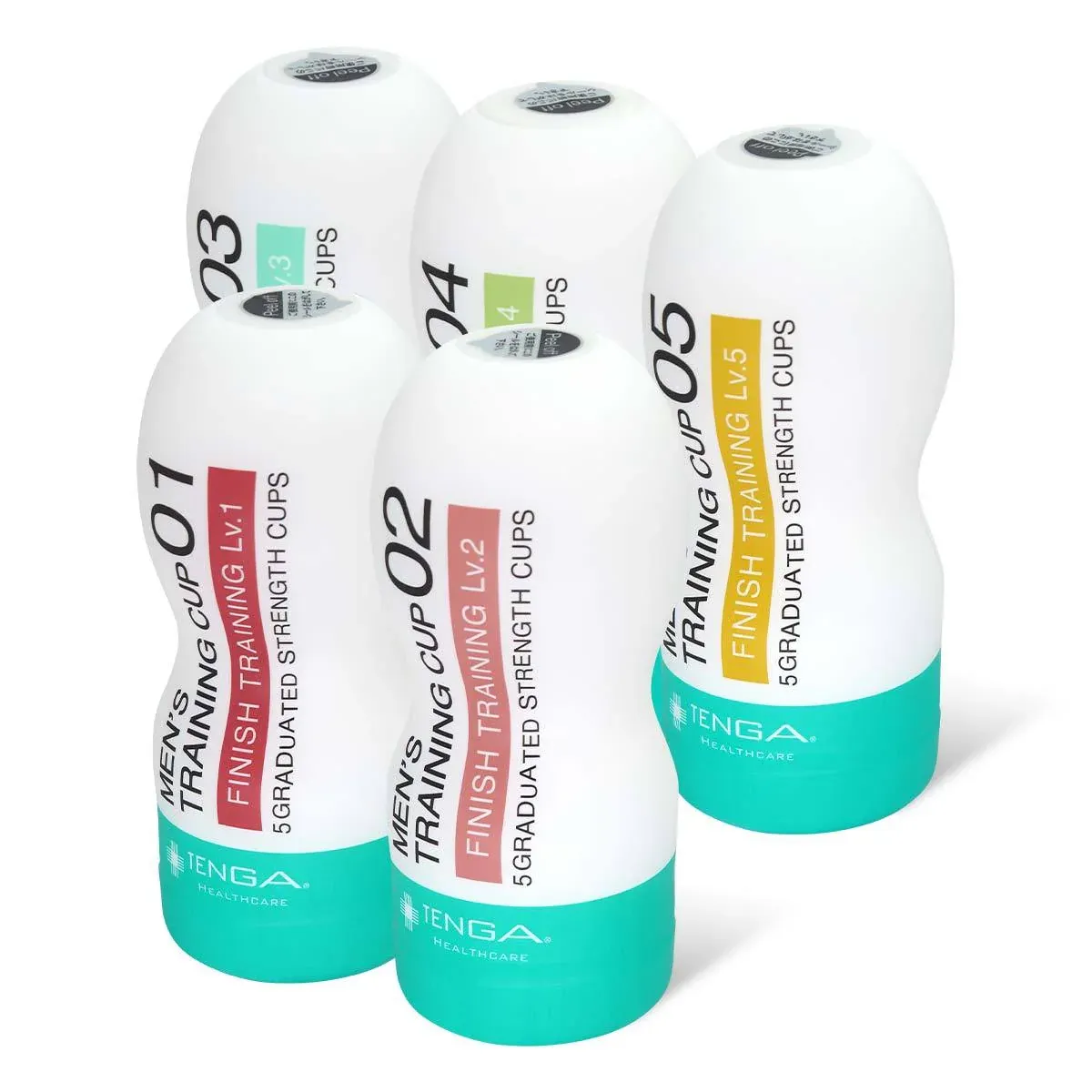 TENGA HEALTHCARE 特別研發的「男性訓練杯 完事訓練系列」,專為改善男性因方式不當而造成的 延遲快感、快感障礙、不易射精 等問題。以 01~05 五款不同刺激程度的杯款,逐步訓練敏感度與射精反應,協助男性重建健康且正常的快感機制。