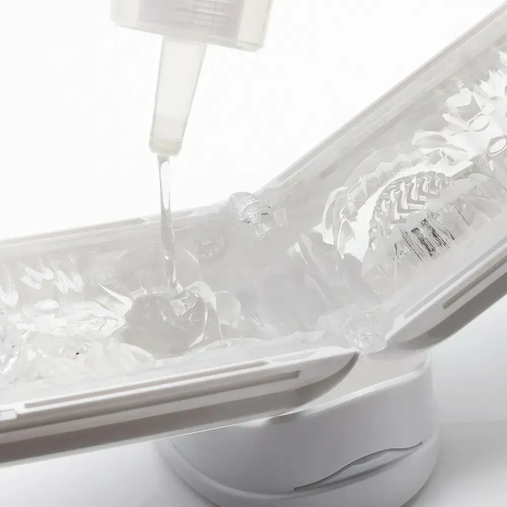 將潤滑液均勻塗抹於使用部位或 TENGA 裝置內部。
