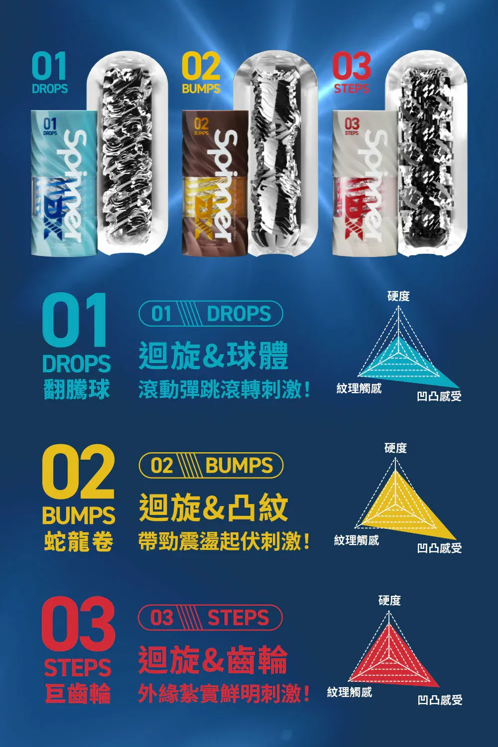 TENGA(日本)Spinner DX 極上迴旋飛機杯系列全新升級登場,強化旋轉結構並加大整體尺寸,帶來更強勁、更動感的快感體驗。透過創新自動旋轉技術,在推進與拉出的過程中產生持續旋轉吸附效果,模擬真實律動節奏,讓快感層層堆疊、連續不斷。