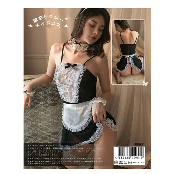 KR(日本)誘惑系性感女僕 成人角色扮演套裝,以經典女僕元素為基礎,結合大膽剪裁與成熟取向設計,呈現風格鮮明的成人角色扮演造型。整體以黑白單色調為主,營造低調卻充滿張力的視覺氛圍。