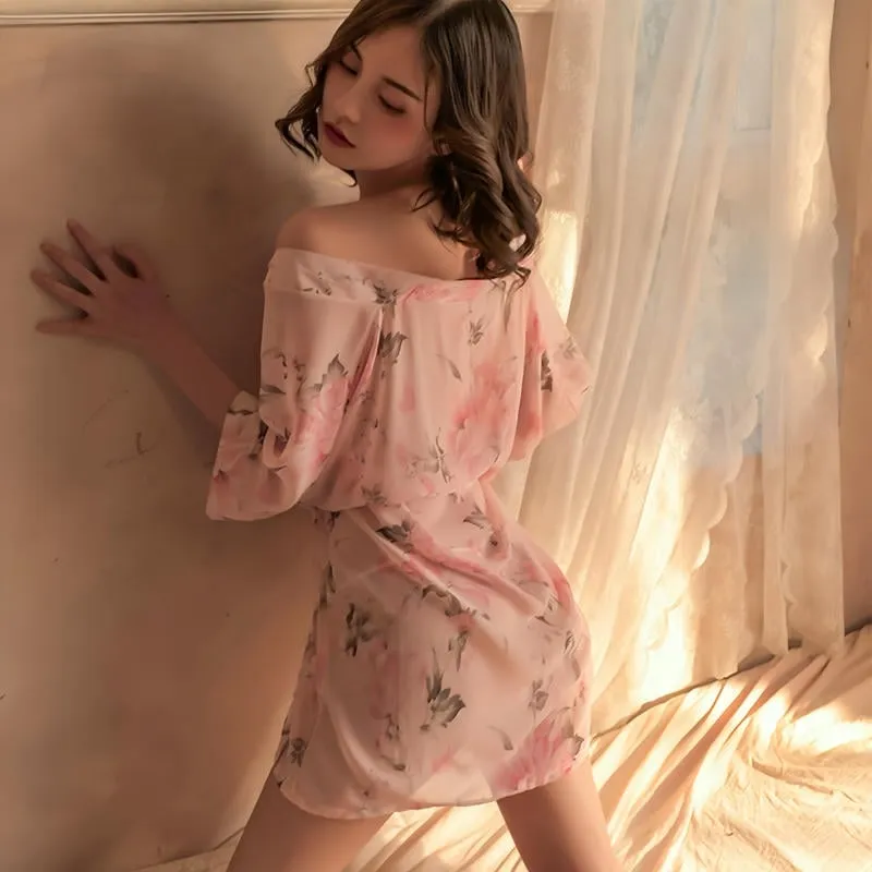套裝包含和風外衣、腰帶與內搭款式,整體搭配完整,適合成人情境造型、角色扮演或私密穿搭使用。是一款兼顧浪漫氛圍與造型完成度的和風性感內衣套裝。