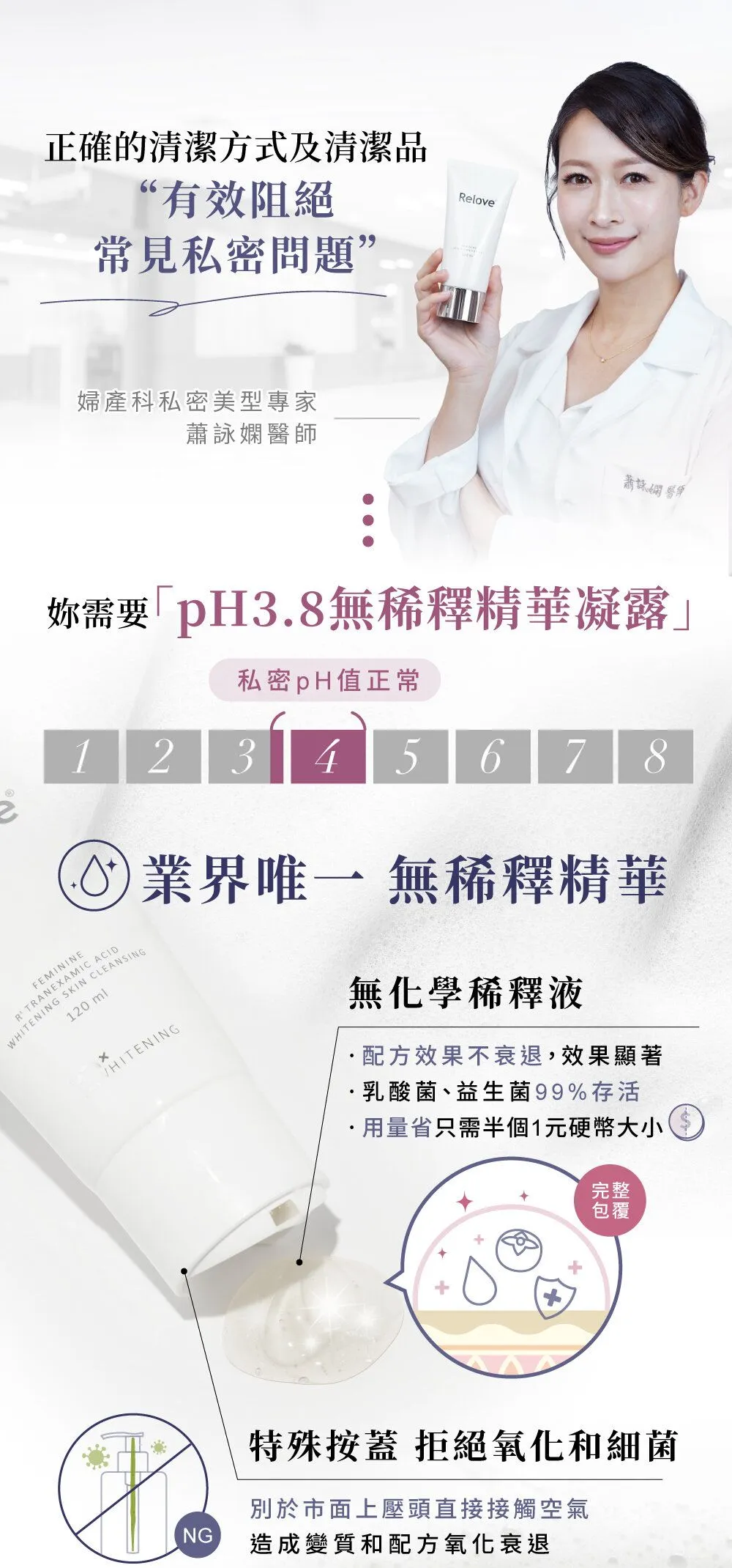 - 天然乳酸:維持私密肌理想 pH 值,使肌膚保持清爽與平衡。