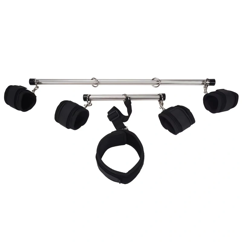 Roomfun 不鏽鋼可拆式束縛組整合手銬、腳銬與項圈於一體,結合可調節不鏽鋼桿設計,