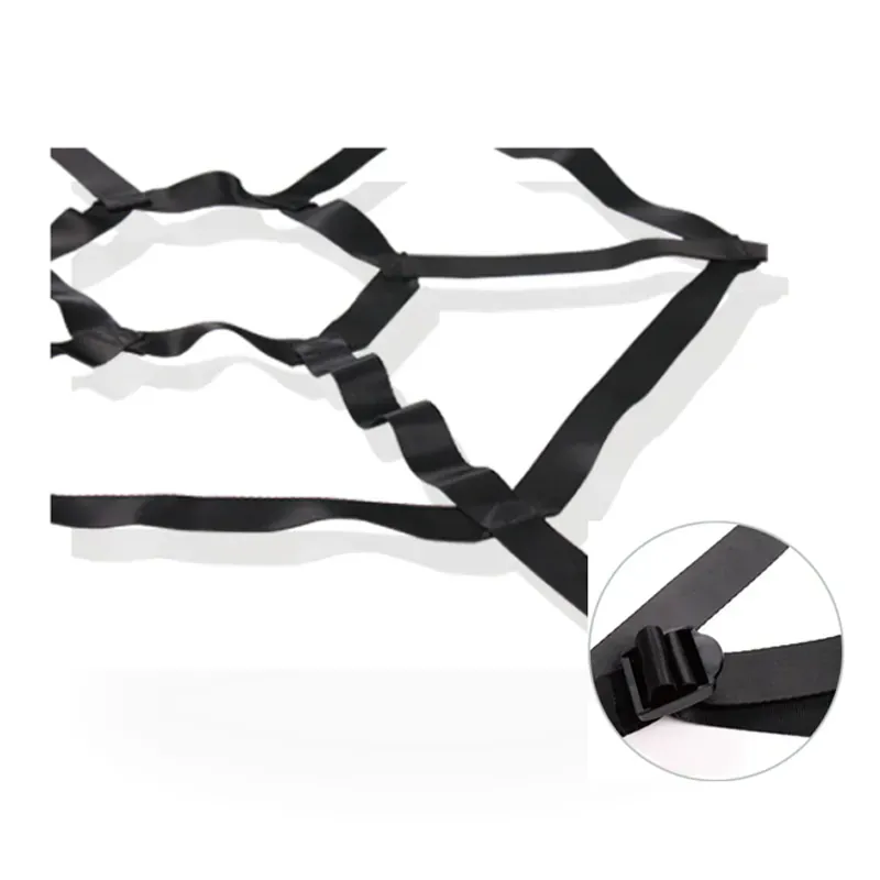 Roomfun 蜘蛛網床上綑綁套裝 讓你的雙人床瞬間化身專屬調教舞台 創新六邊形蜘蛛網結構 提供多個固定點 讓每一次束縛都有無限可能 只需將蜘蛛網四角拉緊固定 立即開啟感官遊戲