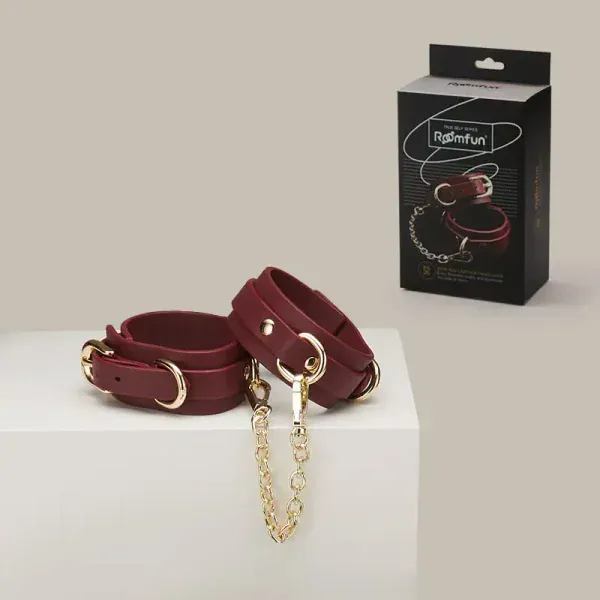 Roomfun 仿皮手銬 以高質感仿皮搭配柔軟內襯設計 提供穩定束縛與極致舒適體驗 內裡親膚不磨手 長時間佩戴也不壓迫 配有堅固金屬龍蝦扣 可快速連接或分離 輕鬆搭配其他綑綁或調教道具