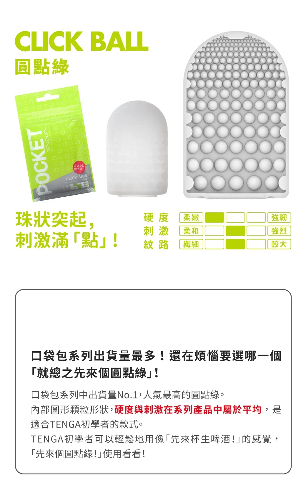 想要感受節奏感十足、層層跳動的刺激體驗,TENGA(日本)飛機袋 CLICK BALL 以滿佈大小突起的立體結構,帶來咕嚕咕嚕般連續衝擊的快感享受。每一次推進都能觸發不同刺激點,讓感官不斷被喚醒,從溫和到強烈自然堆疊,帶來豐富又爽快的使用感受。